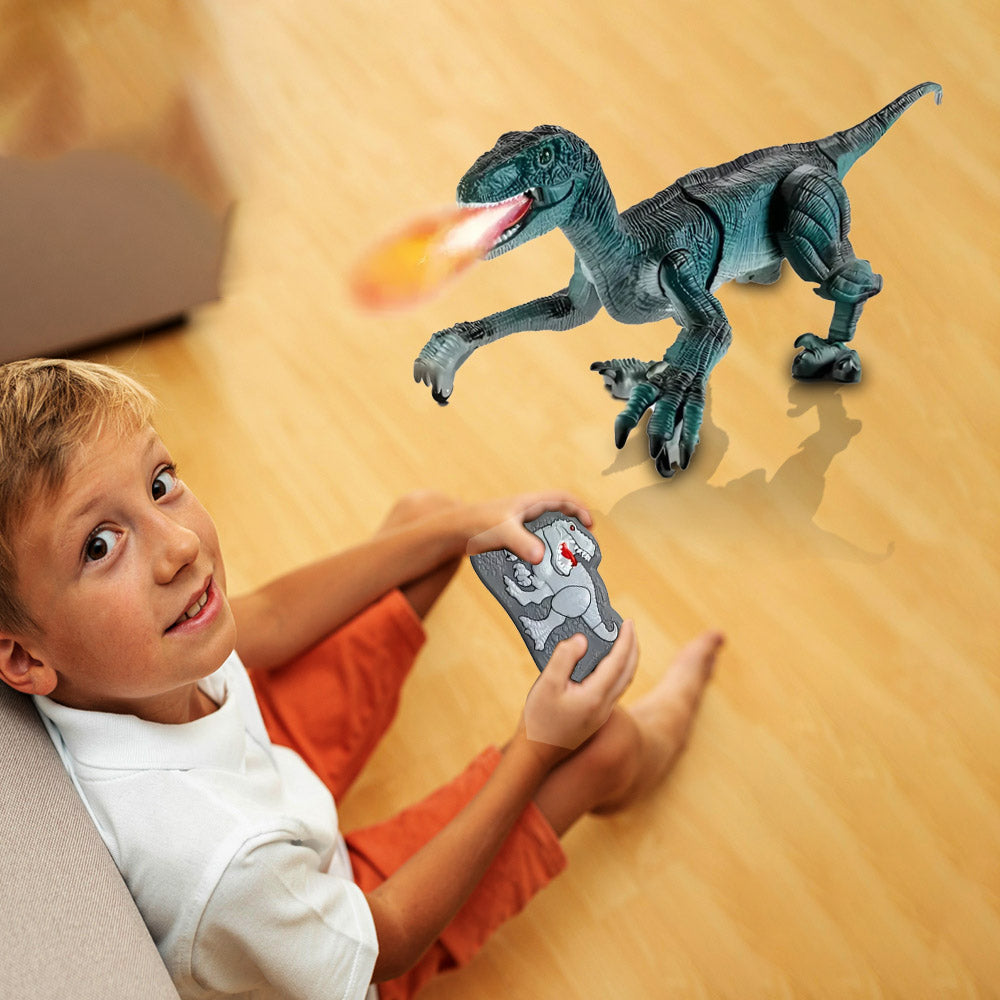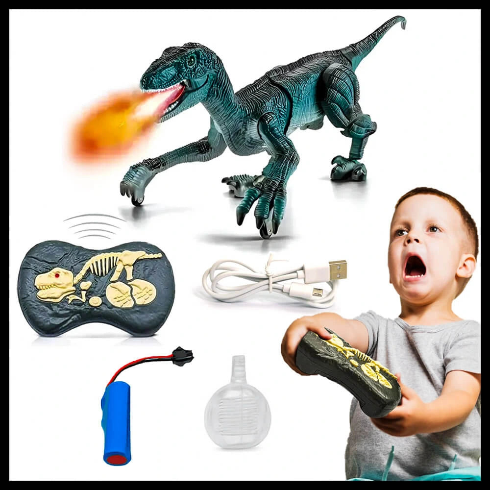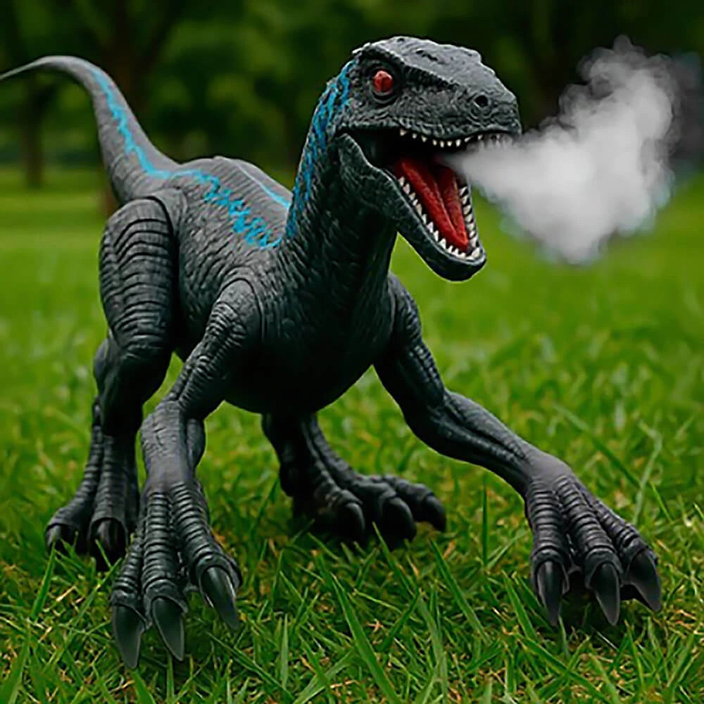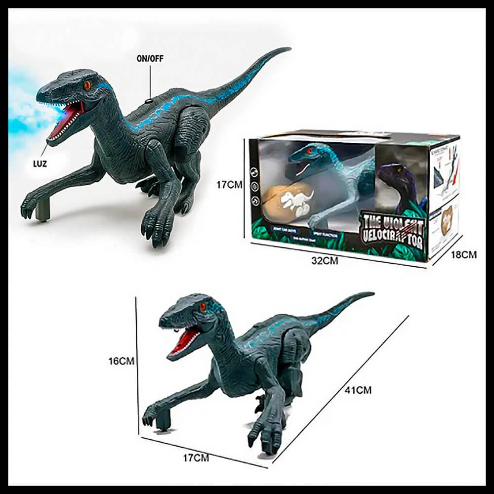 Es mas que un simple juguete a control, ya que El VELOCIRAPTOR tiene un diseño realista que vota humo por la boca y prende luces que le da un efecto de Fuego 🔥impresionante.