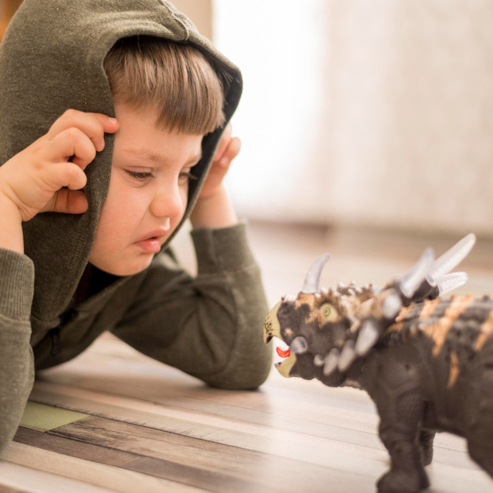 Es más interactivo y realista: se mueve, ruge y lanza humo, haciendo que los niños jueguen mucho más que con un juguete estático.